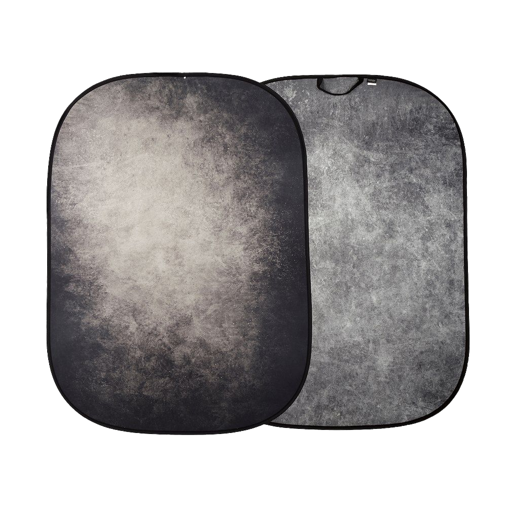 Quick and easy to set up, Lastolite's Pop Up Backgrounds fold down to a fraction of their full size. This Concrete/Smoke backdrop is reversible, featuring two moody grey options that can be used horizontally or vertically for portraiture and fashion photography, or video interviews.