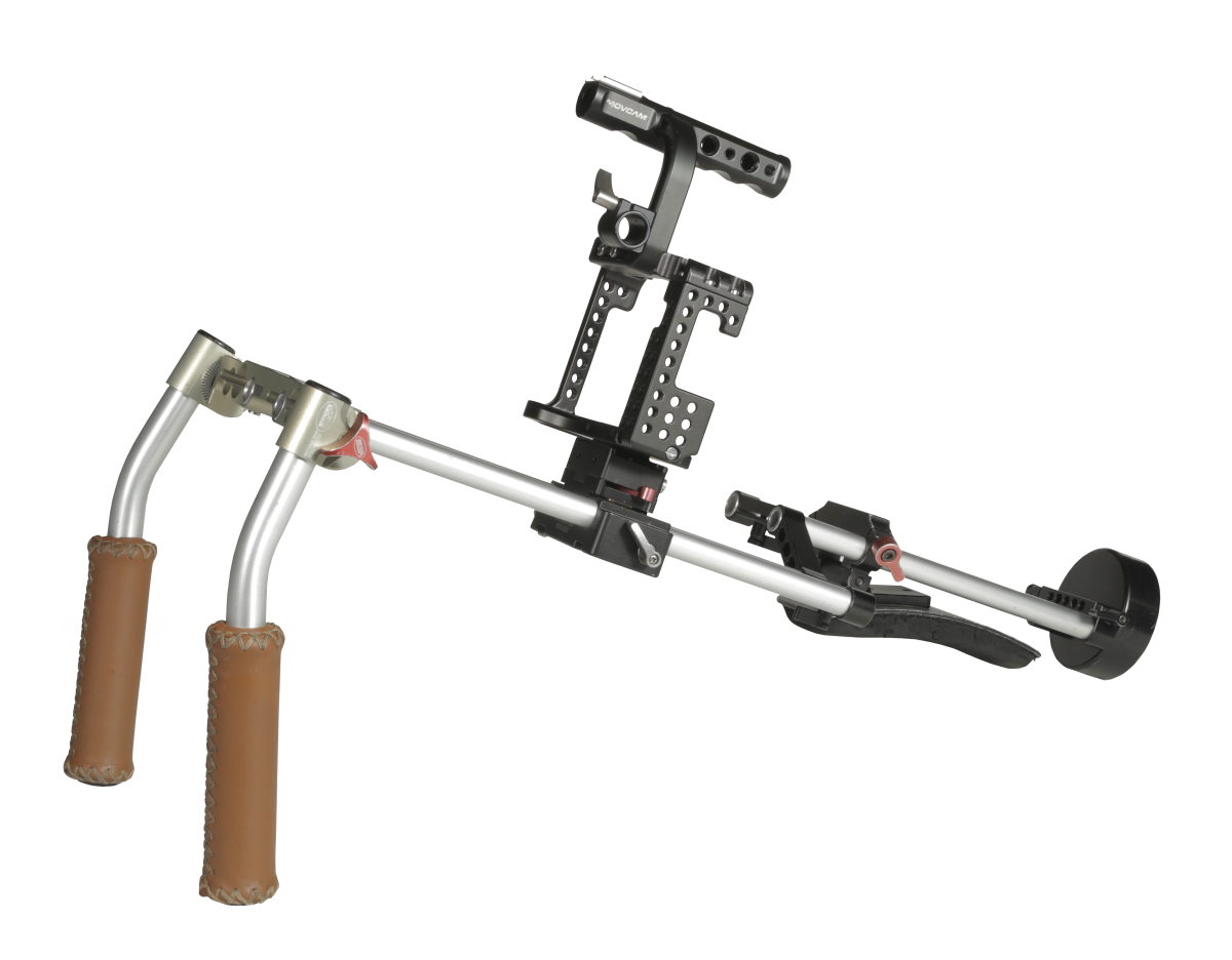 The 15mm offset positions the camera in front of the operator, so they are looking strait at the screen without having to crane their neck. The included moosebars make the camera rig ergonomic and easy to use for extended periods, and are easily to adjust and reposition on the 15mm bars.
