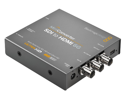 Blackmagic's handy little Mini SDI to HDMI converter is useful for putting a professional SDI signal in to devices that only accept HDMI cables, such as displaying a feed to a television at an event. Also useful for ending long cable runs where HDMI is unsuitable due to signal drop off.