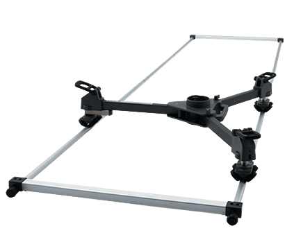 This lightweight track and dolly kit is quickly assembled from 8 lengths of 0.8m screw-together track, the Libec TR-320 is as portable as it is solid. The tripod (not included) attaches by three rubber hooks, with the dolly replacing the feet or groundspreader on the tripod.